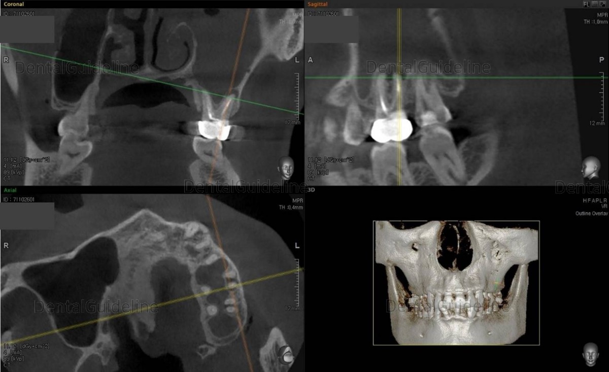 2. CBCT radiograph showed that the inflammation had already spread to the maxillary sinus, and the apical lesion was also seen in the first molar.