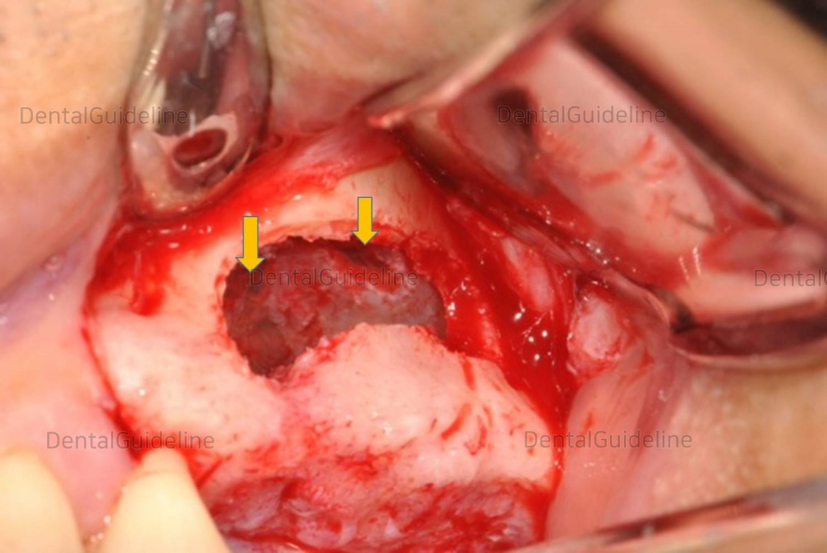 9. The graft material is inserted into the maxillary sinus. First, fill in the anterior region of the maxillary sinus.