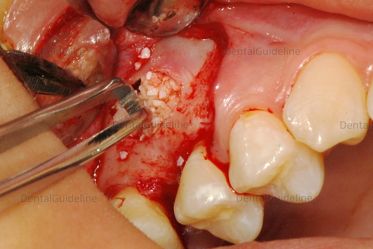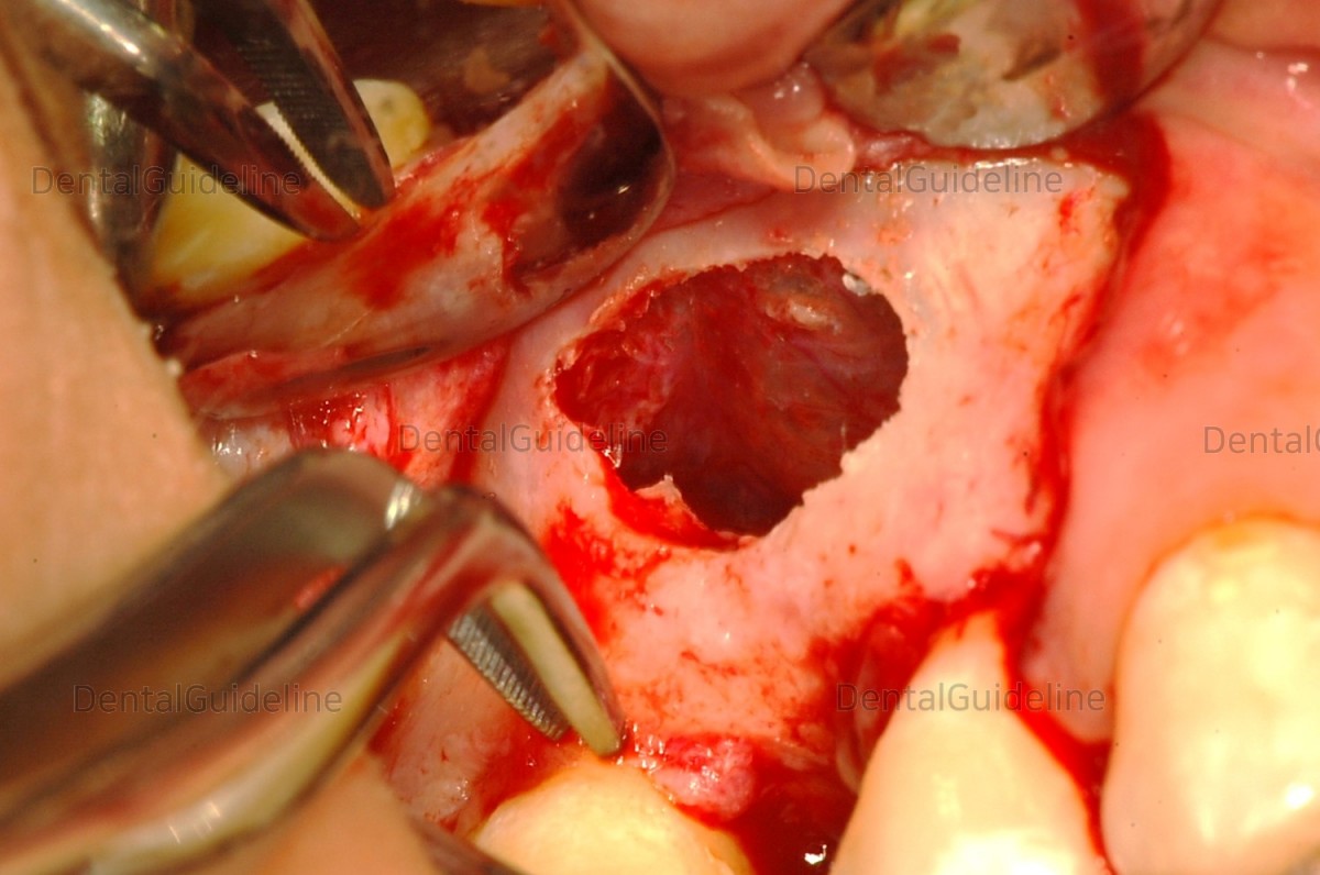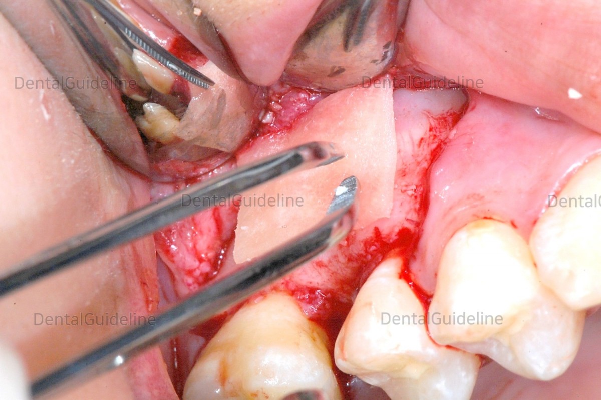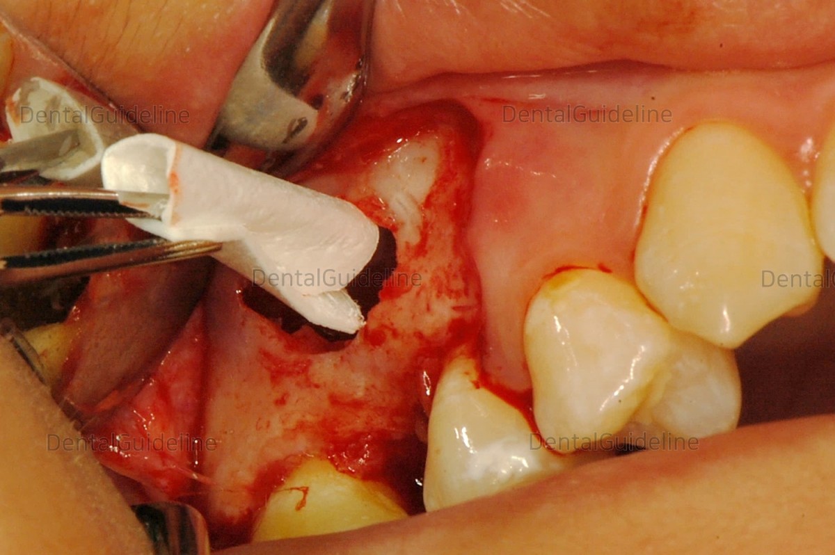 absorbable collagen membrane is placed under the raised sinus membrane.