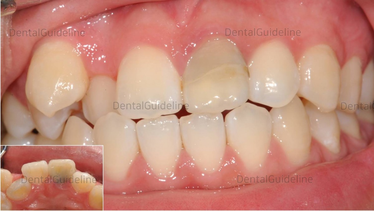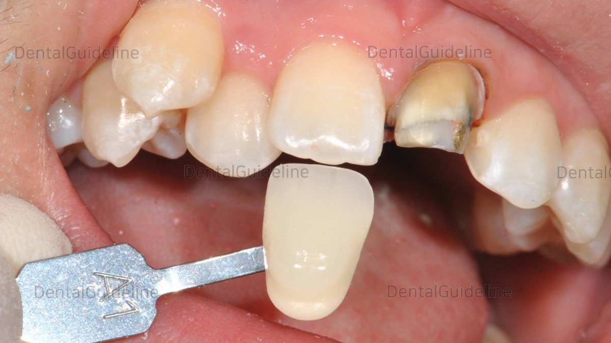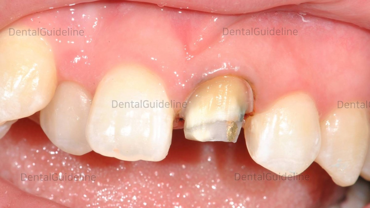 A case of a central incisor with deep caries. It was installed with PFM after root canal treatment.
