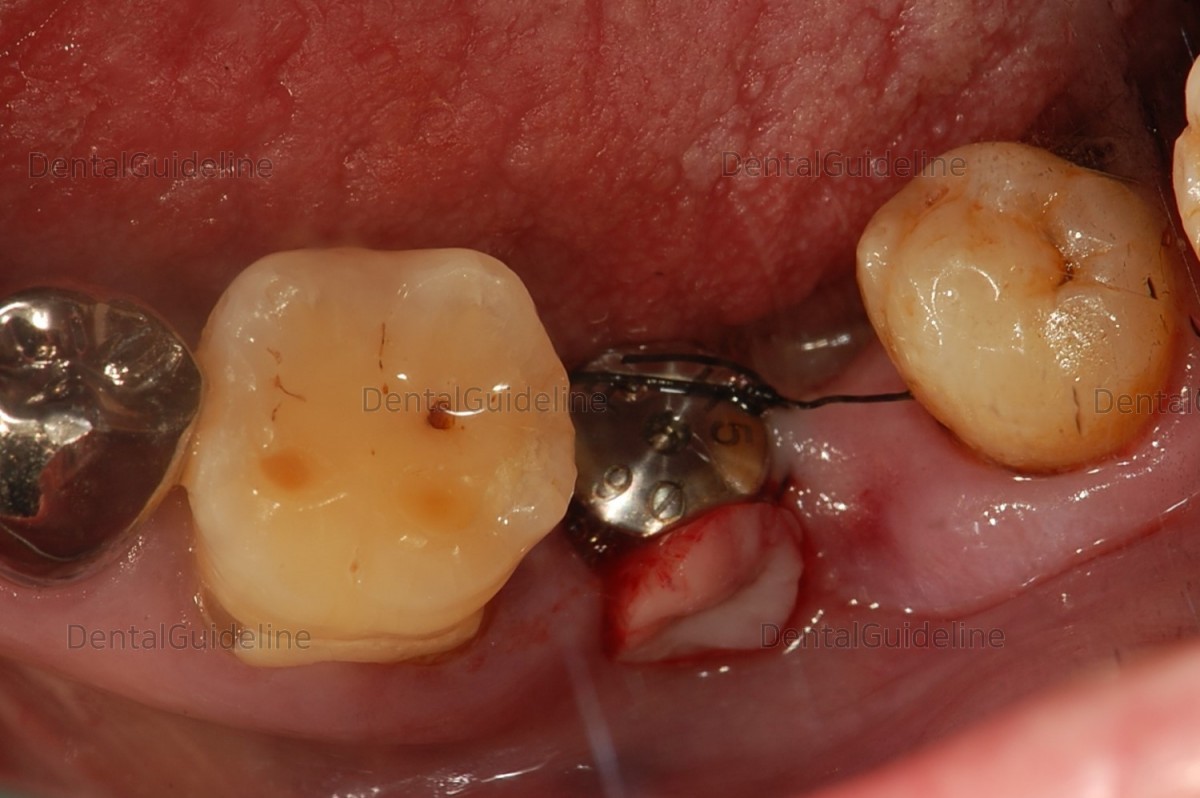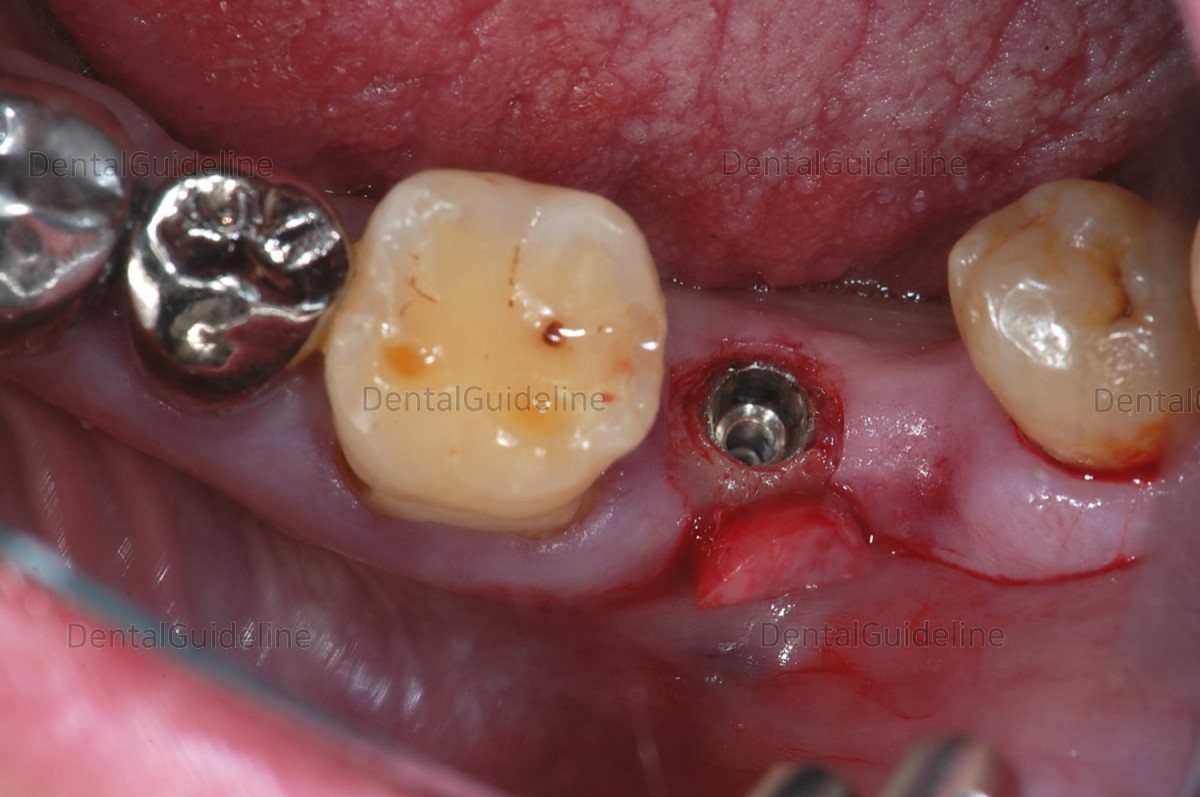 The attached gingiva was tied around the healing abutment